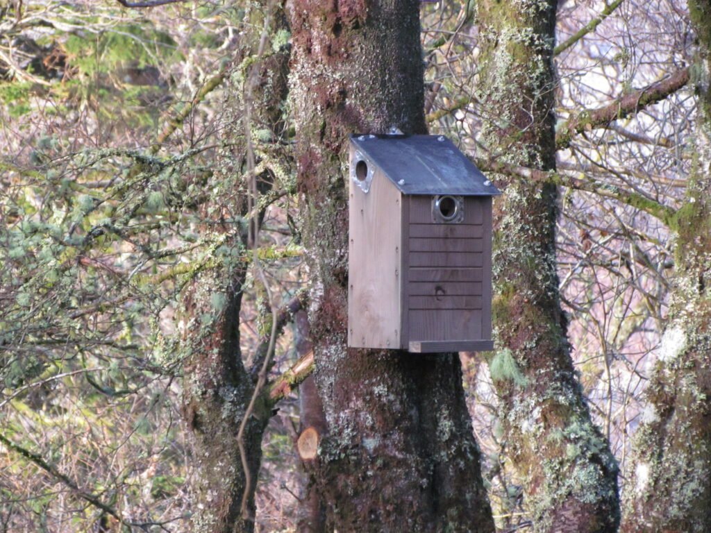 The first of two Red Squirrel Nestboxes has now been placed to give support in the forthcoming breeding season. It has already been inspected by the resident population, hopefully it will aid future youngsters to get a good start in a weatherproof and predator proof assembly.